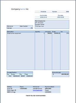 I takt med att internet breder ut sig och handeln med utlandet ökar behöver allt fler företagare fakturera utländska företag. Då kan det vara bra att ha en fakturamall på engelska så att även mottagande part kan förstå vad som står angivet och hur betalning ska utföras. Med nedanstående mall i Excel kan du enkelt lägga in dina varor, skatt och andra relevanta uppgifter för att du ska kunna fakturera på engelska.